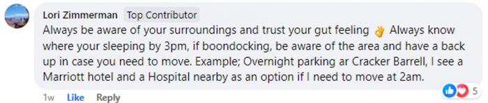 When the Roadtrek community was asked, one of the most popular responses was in reference to sleeping in public areas; trust your gut and have a place in mind to relocate. Being aware of your surroundings and keeping safety paramount is the key to a good night’s rest.