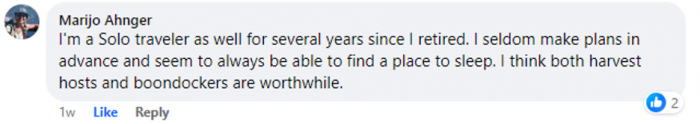 In addition to the general resources Roadtrek International provides, there is an email group list specifically for solo travelers: https://roadtrekchapter.org/travelling-alone/
